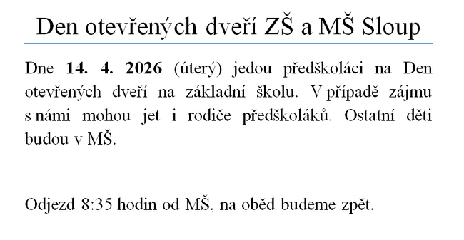 Den otevřených dveří ZŠ a MŠ Sloup 14. 4. 2026
