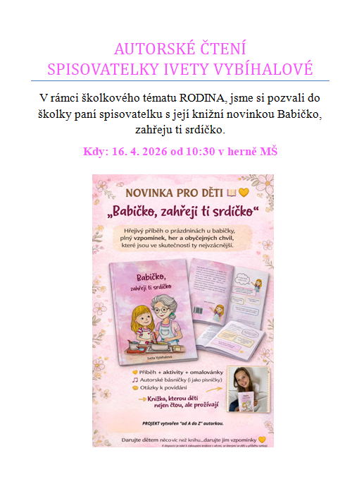 Autorské čtení paní spisovatelky Ivety Vybíhalové 16. 4. 2026